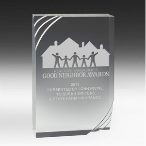 Our freestanding acrylic awards come in contemporary shapes and can be screen printed,laser engraved or printed in 4 color process. Awards Less Than Minimum Charge: $100.00 (G) per item, contact Factory for absolute minimum. 3 1/2" W x 5 1/2" H x 1 1/4" D
