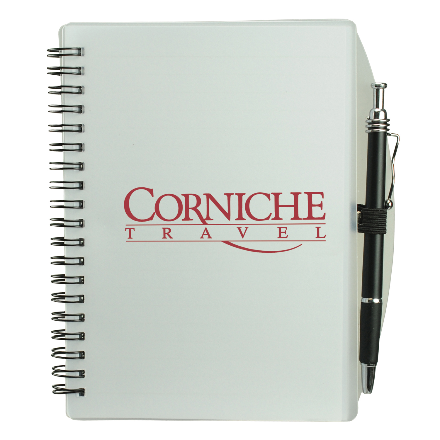 70 sheet journal with pen and 50 point board cover. Our journal with pen would be perfect for the back-to-school student, the assertive administrative assistant, the avid paper-lover, and pretty much everyone else. 5" W x 7" H. Complies with CPSIA. 5" W x 7" H