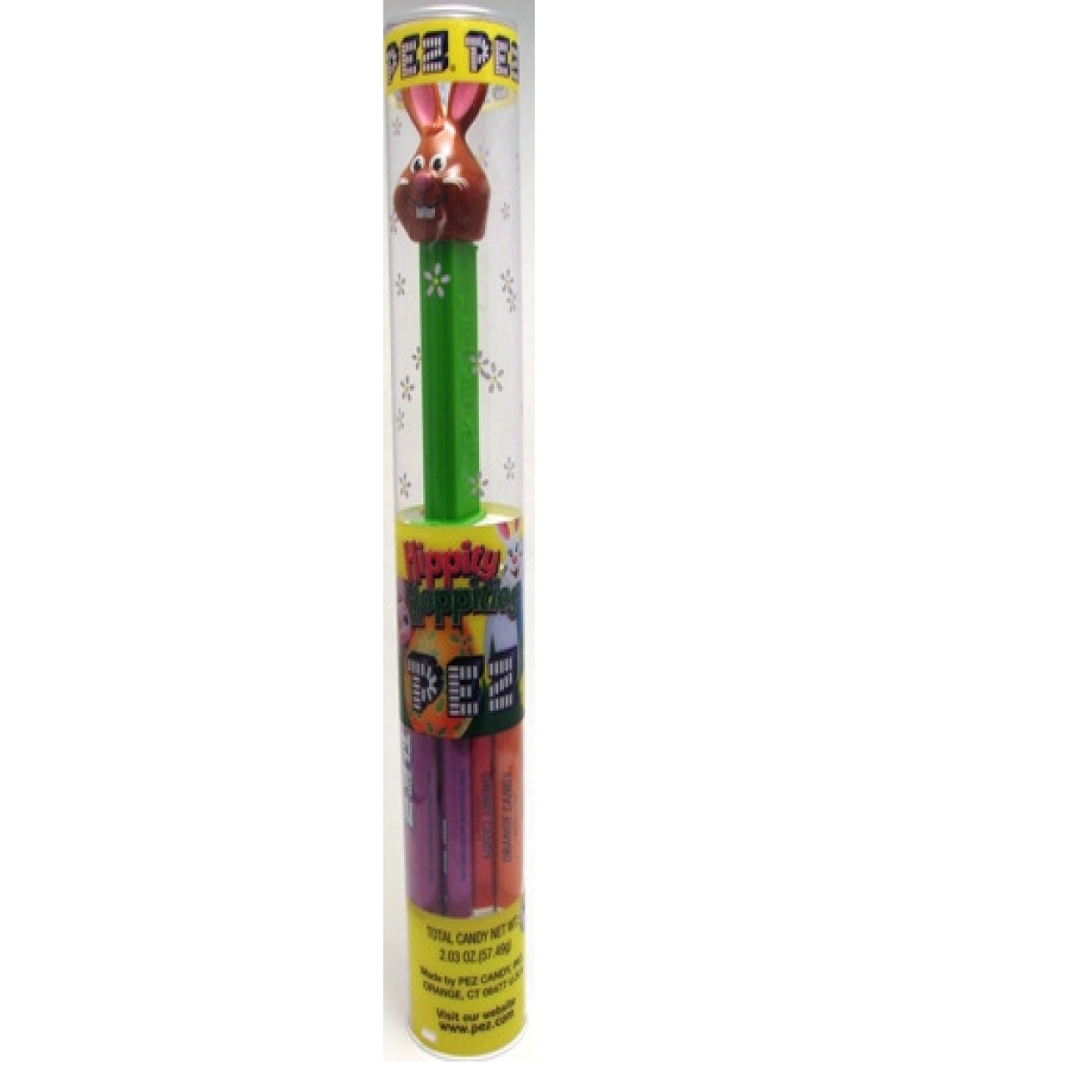 This Brown Easter Bunny Pez Dispenser comes in a tube and includes 6 rolls of candy.