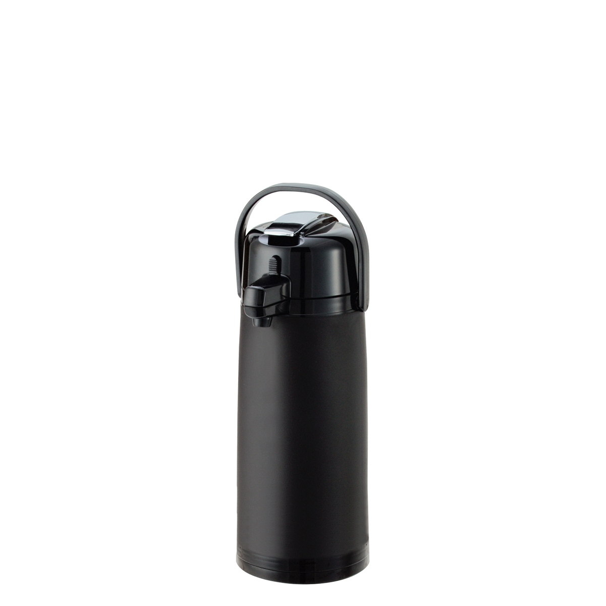 Smooth Plastic Black Matte Lever Thermos (2.2 Liter) - Serve up something great with our Eco-Air49838 family of airpots. Available in a wide range of styles and sizes, you're sure to find an Airpot to suit your needs. Holds heat for 6-8 hours. Constructed from stainless steel exterior and glass interior with vacuum insulation. Hand wash, do not submerge. 6" L x 8" W x 16" H