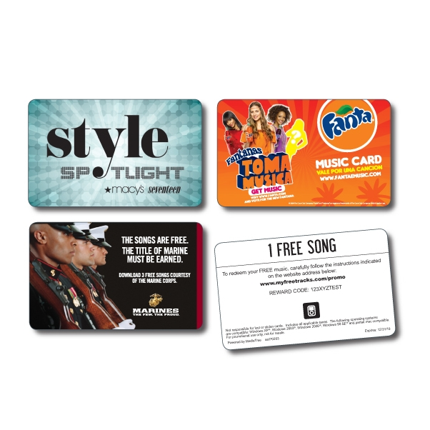 Music Download Cards feature music's hottest hits, with nearly 9 million songs available. Download your free music to your iPod, iPhone, computer, or any MP3 music player. PC and Mac compatible. Music Downloads are perfect gifts for music lovers, great for college handouts, trade shows, direct mail, on-packs, and more. Add a custom website to your music card promotion and let our creativity and free MP3s enhance your brand. 2 1/8" L x 3 3/8" W