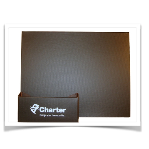Easel for brochure display; 12 x 9 1/2 x 1, tray is 6 x 2 3/4 x 1. Choose from colored, textured GalleryBoard or uncoated Bare Value. Printed to Order. Made in USA from 100% recycled content fiberboard. Complies with FSC. 12" W x 9.5" H x 1" D