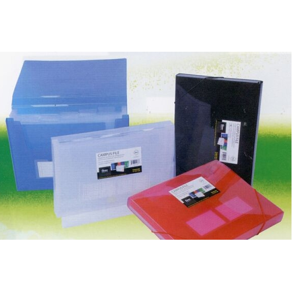 Letter size campus file with 5 tabbed pockets, storage area & index/business card holder. 13" W x 9 1/2" H