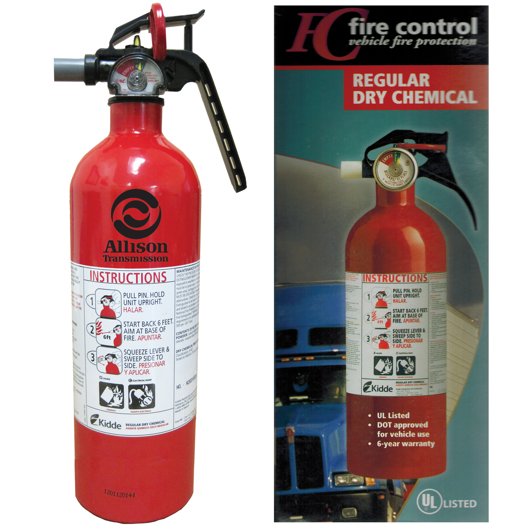 This Fire Control Heavy Duty Truck and Fleet Disposable Fire Extinguisher has been designed to meet the heavy demand requirements of vehicle fire protection. Unit contains 2.9lbs of sodium bicarbonate dry chemical extinguishing agent. Suitable for use on liquid and energized electrical fires. One-time use. 14.5" L x 3" H