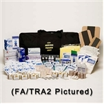 1 box 1"x3" plastic band-aids, 10 10x30 multi trauma dressing, 1 box 2x2 gauze pads, 1 12 pack 2x4 sterile gauze, 1 4 Oz. Eye wash, 1 box 3/4"x3" plastic band-aid, 4 3"x4.5 yard ace bandage, 5 1"x10 yards surgical adhesive tape, 2 5 1/2" bandage scissors, 1 3" universal cervical collar, 1 doctors pen light, 2 4 Oz., hydrogen peroxide, 6 6"x9" large ice packs, 10 large mayday solar blankets 84"x52", 2 paramedic blankets, 1 splint kit 1 med 1 large safety pins & gauze rolls, 5 triangular bandages. 24.5" L x 14" W x 14" H