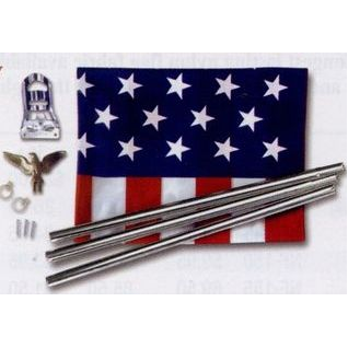 Our Budget US Home Sets are perfect for those who want a quality product for less! This promotional flag kits come with a 3' x 5' printed polyester American flag, a 6 foot sectional aluminum pole, 5" gilt plastic eagle top, steel mounting bracket with screws and EZ-Mount(TM) rings. Great for showing your American pride any day of the week!. 5' W x 3' H