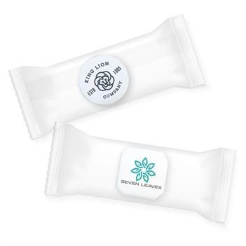 For a few cents you can have your brand printed directly onto our made in the USA sugar-free peppermints. What a fresh and tasty way to show off your logo or say thank you, congratulations, happy holidays, fund raising awareness ribbons, and/or product launches. The ideas are endless. One mint is individually packaged in a clear cello pack, so nothing distracts from your brand. EQP does not apply. Note: Each box contains 1000 one-packs. 2 1/4" W x 13/16" H