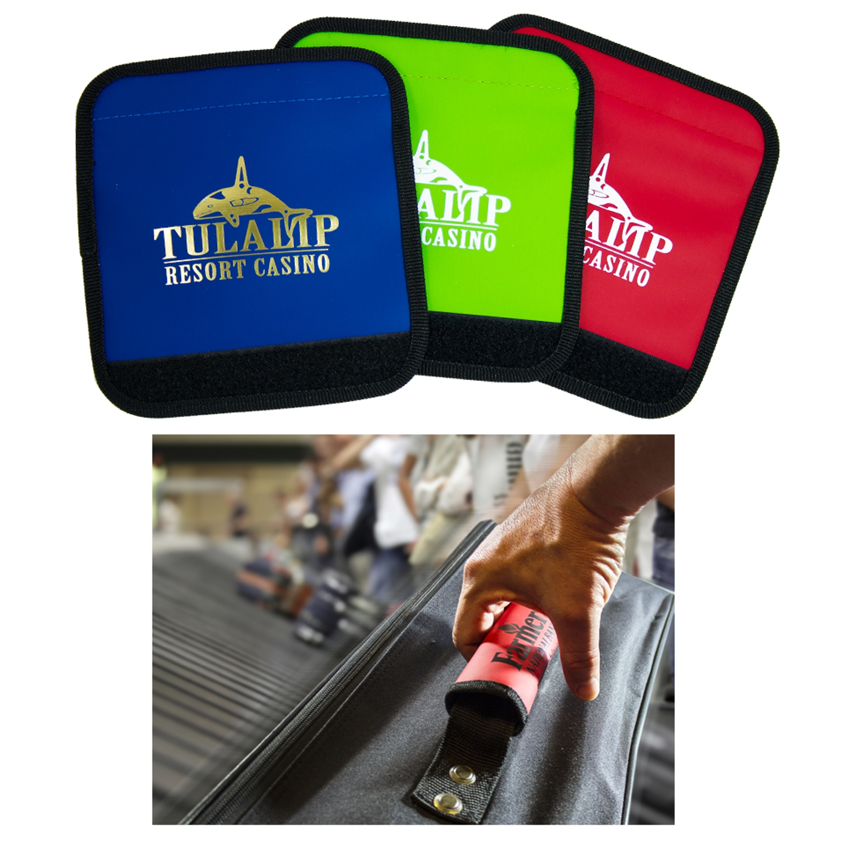 Grab bag luggage grip is soft to touch and easy on the eye. 5 1/2" W x 6" H