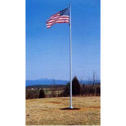 This flagpole features an exposed height of 30', a ground set, cone tapered design and gold anodized aluminum ball top. The soft braided, polypropylene halyard runs along the exterior of a stationary truck with a pulley. Includes a cast aluminum cleat with mounting screws, swivel snaps with vinyl covers and a foundation sleeve made of galvanized steel. Additional details 5798437664unflagged max wind 68 mph, 4"D butt, 2 3/8"D top, 33' overall length. 30' L
