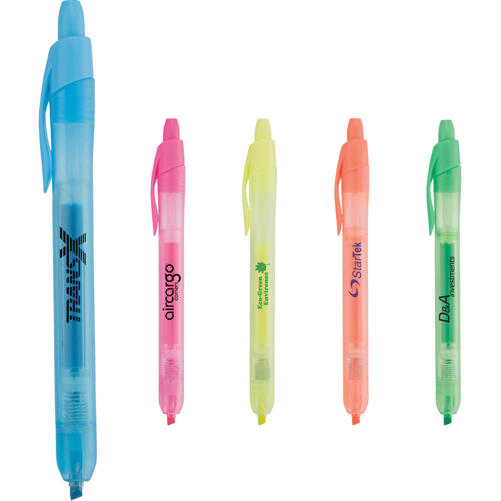 Plastic retractable single color highlighter. Internal closure allows for longer refill life. 6" L