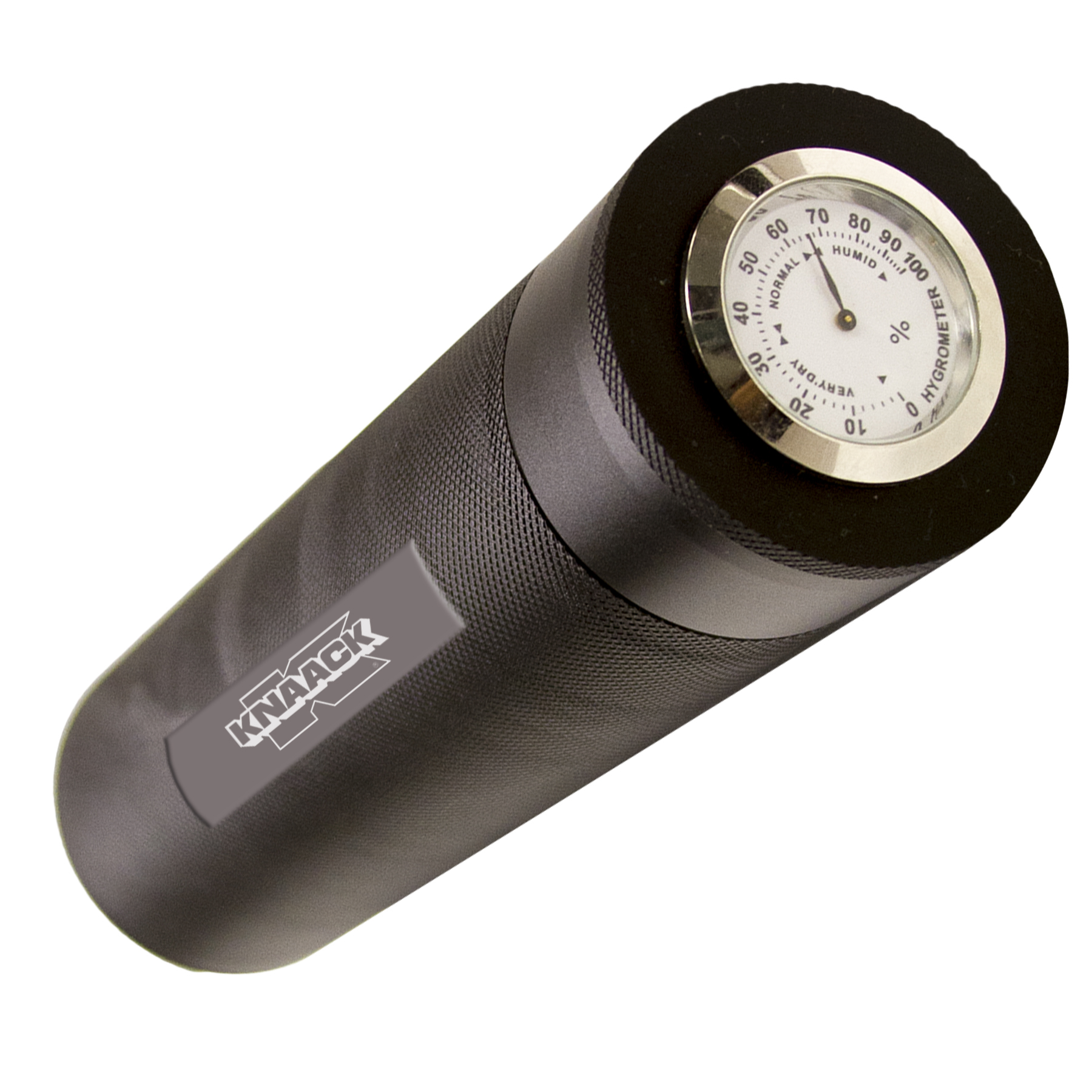 Black Anodized Aluminum Humidor Tube with Endcap Hygrometer and Built in Humidifier, Holds 3-5 Cigars. 7 7/8" Long, 6 1/2" Diameter