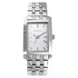 Rectangular grey dial with stick markers.. Sweep second hand.. Silver-tone case and stainless steel bracelet.. Water resistance to 30 meters.. 29.5mm L x 46mm W x 9mm Thick