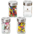 Medium Candy Jar with Classic Bubble top. Fill with candy, cookies or mints to keep your name in front of your customers! Includes Full Color imprint with fantastic detail and color accuracy. Additional spot colors can be added for critical colors. Use the complex version of your logo you paid for! Organic Polymer Ink,brilliant colors, good top-rack residential dishwasher resistance - microwave safe, lead and cadmium free - no Prop 65 warning stickers. Add Braille or many other imprint options!. Complies with FDA, Prop 65. 5 1/2" H x 4" Diameter