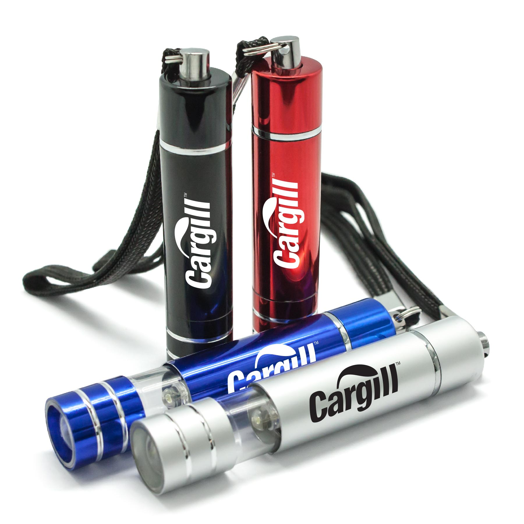 Aluminum flashlight with LED bulb and wrist strap. 2.75" L x 0.5" H