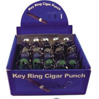 Rubber bodied bullet cutter with key chain: Mixed color rubber bodied punch cutter display. Cutter display box of 25.
