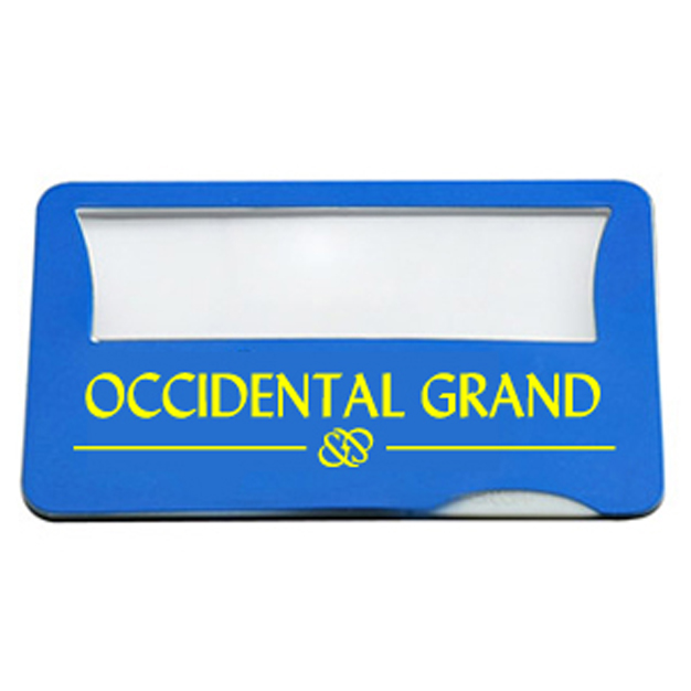 This high-quality magnifier has a 3X power lens bright white LED light and long-lasting battery (included & installed). Perfect for reading seeing menus in dark restaurants etc. Handy credit card size is great for people on the go. 3 3/8" W x 2 3/16" H