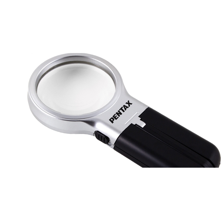 Opens to a free standing position. Foldable into a compact hand held size. Adjustable arm tilted lens for different viewing angles. 6 1/2" W x 3 1/8" H x 7/8" D