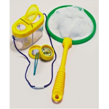 Nature Science Set, Plastic, 16" Bug Catcher, 7" Net, 2" Direction Reader, Signal, Code, Tweezer, 5"x3" Divided Bug Box, Oval Case, Flap, Cord, Handle, Round Piece