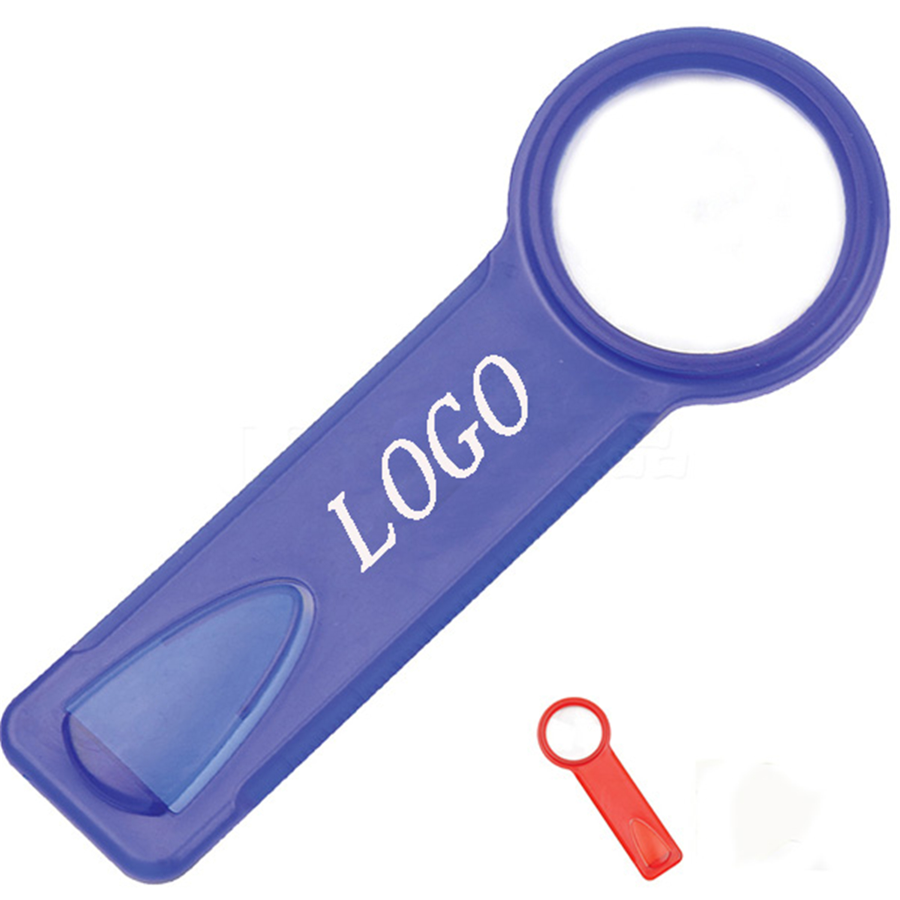 This plastic project has three functions, as a bookmark, as a ruler and as a magnifying glass. Its small size (4-5/16"with 1-5/8" with 1/4") and light weight ( 9 gram) are very convenient for people use. It is a good choice for someone , who has reading trouble. Two colors in available. You can imprint message on it to promote any event. 4 5/16" L x 1 5/8" W x 1/4" H