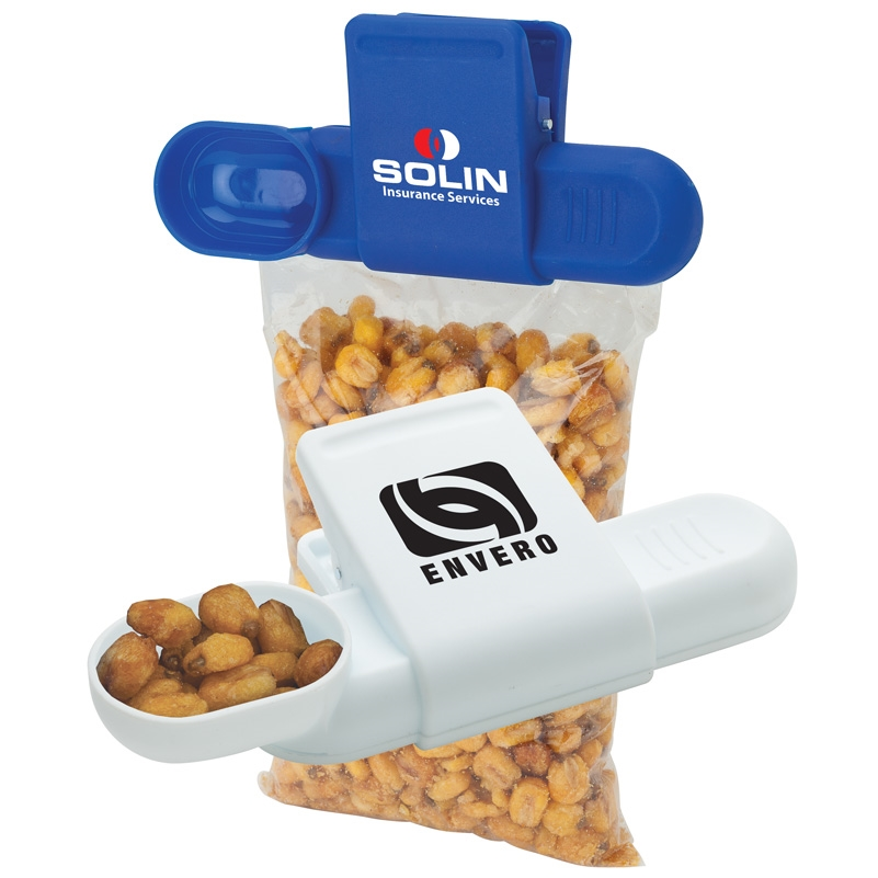 Magnetic refrigerator memo / chip clip has a handy measuring spoon and markings for 1/2 teaspoon, one teaspoon and one tablespoon. 5 3/4" W x 2 3/4" H x 1 5/16" D