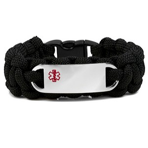 Parachute cord, or paracord, is a strong and resiliant material, useful in scouting or camping emergencies! The medical ID tag is made of stainless steel. [Personalize it with important information.] Please note that once the bracelet is cut it can no longer be reassembled.