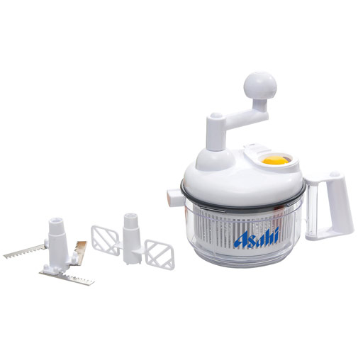 Serve up a fresh promotion. This manual food processor is designed to perform a variety of tasks. Functions as a salad spinner, whipper, and egg separator. Designed with stainless steel blades and a large handle to increase leverage. Quick and easy to clean, this handy food processor is perfect for your favorite home chef. May be customized with a company name and logo. Product measures 10" x 9" in dimension. Complies with FDA, Food Grade, Prop 65. 10" D x 9" H