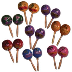 Fiesta favorite! Add to the Salsa beat at your party with our genuine hand painted Mexican Gourd Maracas. The perfect accent to your Conga Line or Fiesta celebration. Our genuine maracas are sold by the dozen pair, (24 pieces) per pack. Each maraca is hand painted in bright colors and colors may vary. The perfect favor for your Cinco de Mayo events as well. Actual size may very from 7" to 9" as these maracas are made from real Mexican gourds. Each pair is poly bagged. Complies with CE, CPSIA, C-TPAT. 8" L