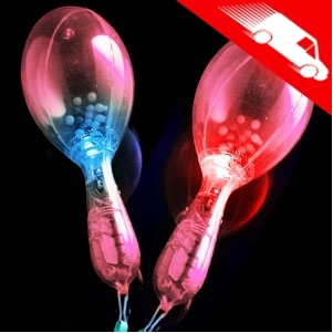 Our LED maracas are fun and festive novelties, perfect for any kind of celebration. Each maraca includes 2 very bright LEDs (1 red and 1 blue). Perfect for kids, adults, and anyone who likes to have a good time! Each box includes 1 LED maraca. Batteries are included and installed!