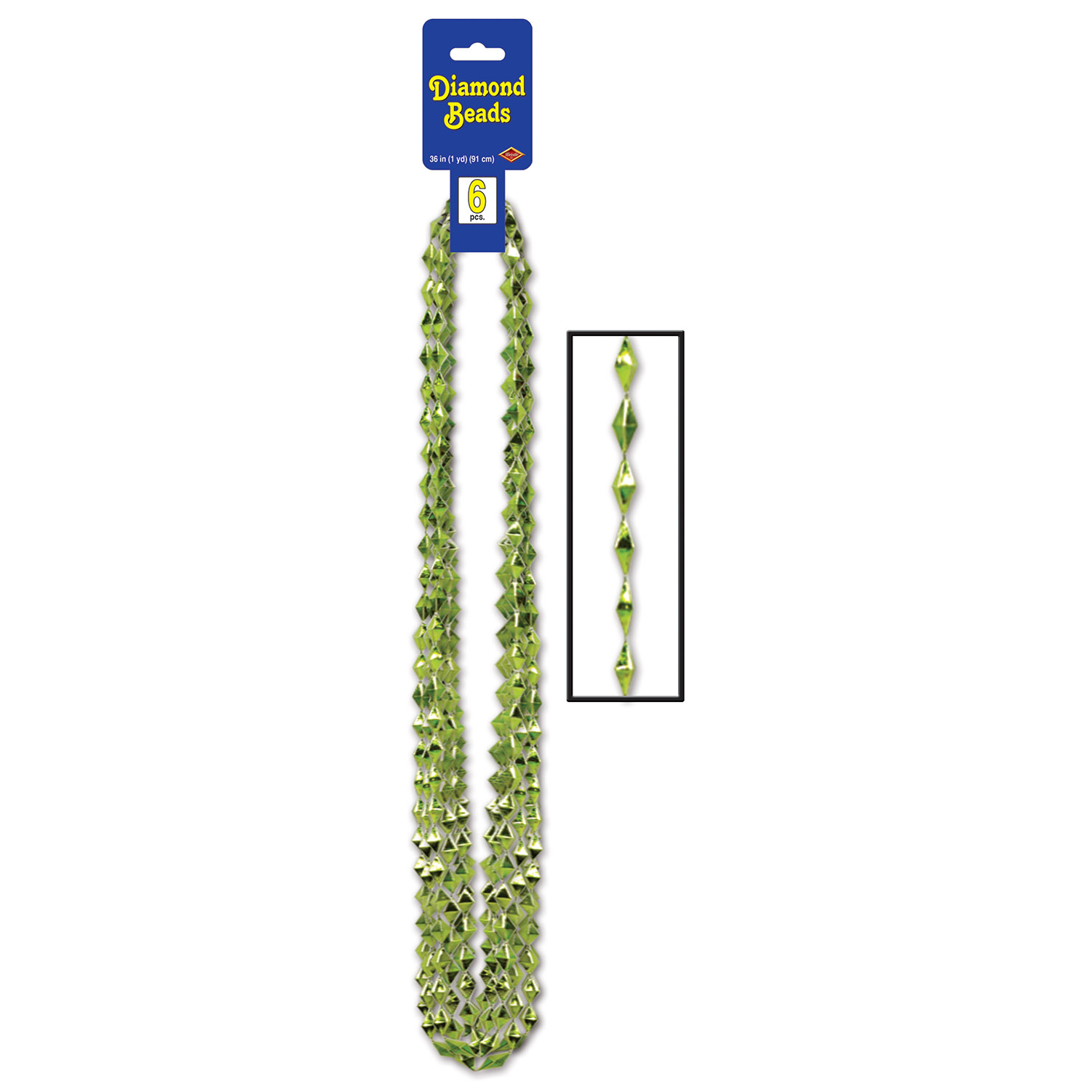 Diamond Beads, Light Green. 36" L