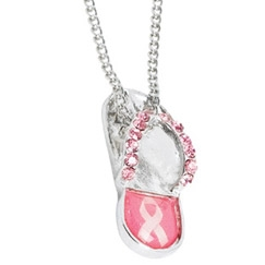 Flip Flop Sandal Necklace. Pink ribbon flip flop necklace with 18" nickel plated necklace. 7/16" full color photodome