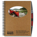 Star spiral notebook comes with ID card slot and matching pen with stylus. Front cover has a clear window for card or photo placement. Retractable pen, stylus with elastic loop includes 70 ruled pages. Polypropylene. 5.375" W x 7" H