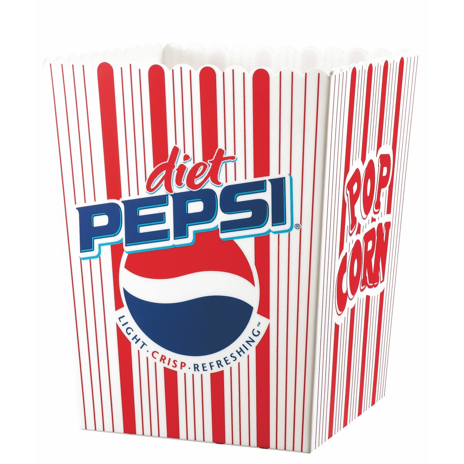 2 Gallon, Polystyrene, Popcorn Container, Square, Scalloped Edge, Open Top, Striped. 8" L x 8" W x 10" H