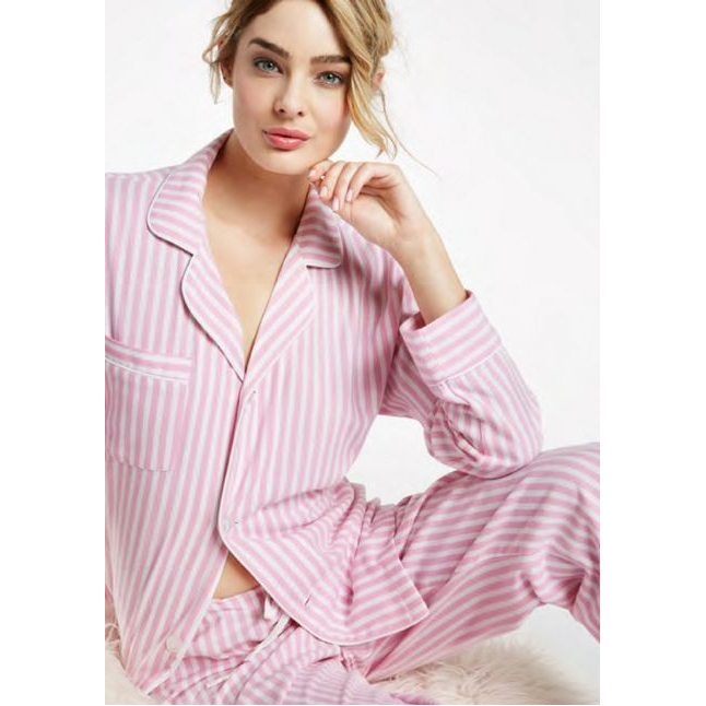 1X-Large, 2X-Large, 3X-Large, 2 Piece, Women, Long Sleeve, Sleep Wear, 3D Striped, Fold Down Collar, Notch Collar, Chest Pocket, Tie Waistband Pant