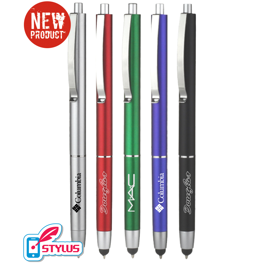 Union Printed, "Sleek" Stylus Twist Pens, These Smooth Twist Action pens features an attractive Colored barrel With a metallic finish, pocket clip and metallic silver accents. Responsive Stylus Point on Tip for All Smartphones and Tablet Devices, Decorated in our Union Shop - Union Bug Available at No Charge!