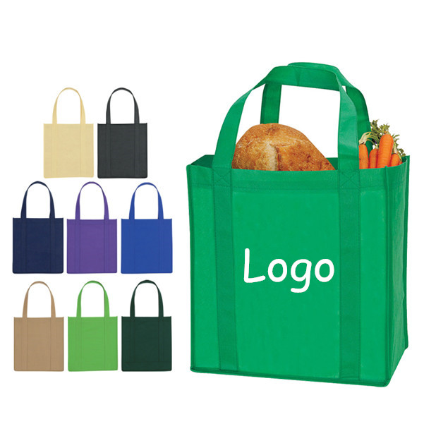 This tote bag is made of 80gram non-woven. It is recyclable, reusable and hand washable. You can use it for grocery stores, tradeshows, markets, and much more. 11 7/8" L x 3 1/8" W x 13" H