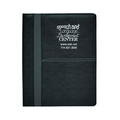 The hand made turned edge Pad Folio has an elite and traditional look for meetings and gifts. The Pad Folios are shipped with generic perforated lined pads inserted into the covers. Made with heavy board and square corners, all Pad Folios are lined with black 10 point goat grain and includes a pocket on inside left cover. 9 1/2" W x 14 3/4" H