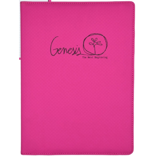 Debossed diamond design and bright colors provide a stylish look. Softly padded cover with hand turned and stitched edges. Featuring inside document pocket, card pocket, pen loop, and 8.5"x11" pad included.