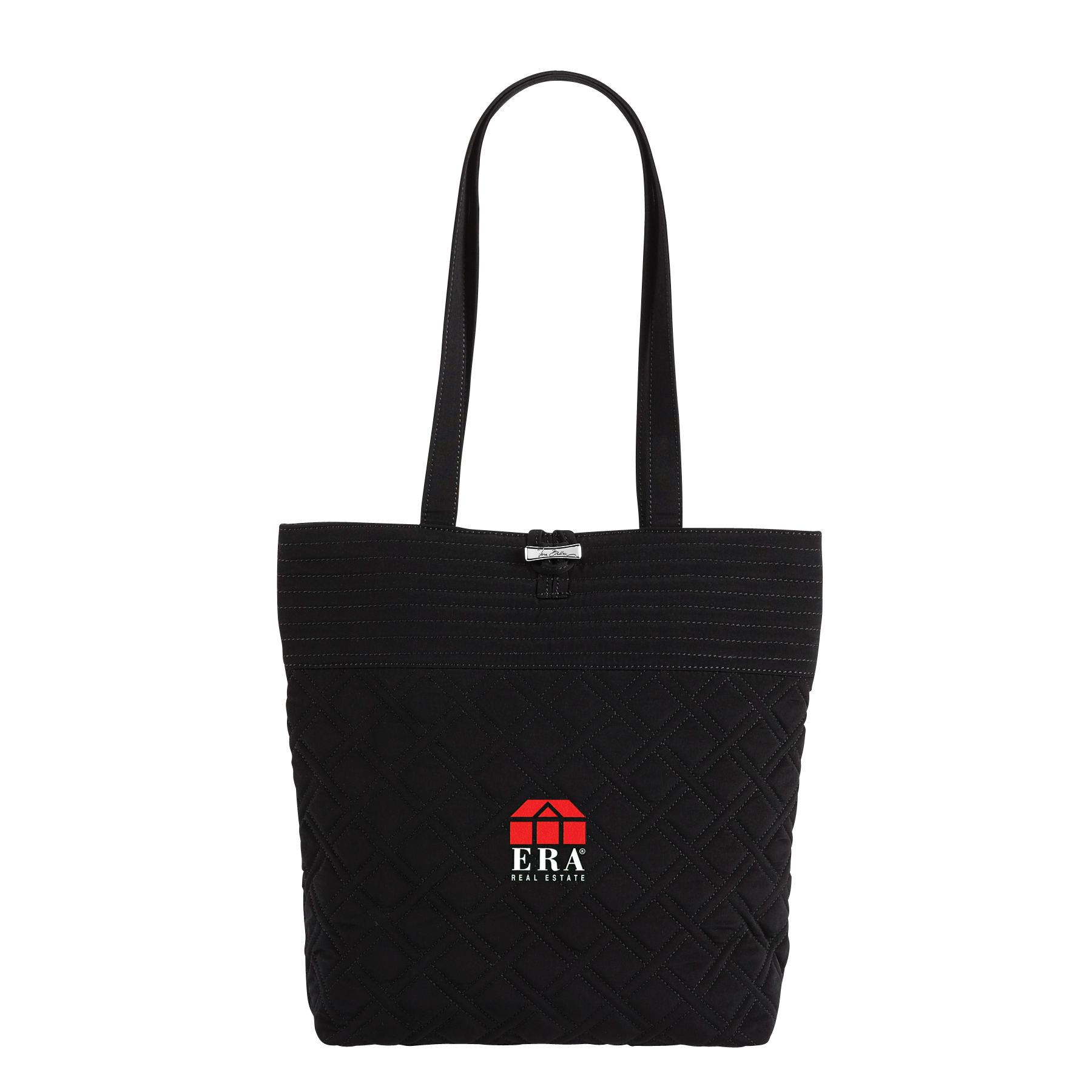 Vera Bradley Can be embroidered - 25 pc. minimum! Call for pricing. Here's the bag you love, but enhanced w/chic/functional updates, like a trendy tortoise toggle and 3 interior pockets. We kept the roominess and the 12 .5"-inch strap drop that fits nicely on your shoulder. Removable baseboard. 11.75"x13.5"x4"