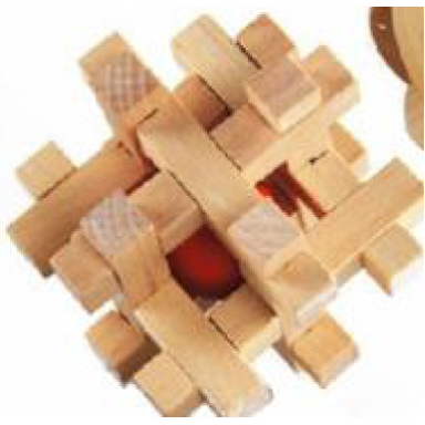 Wood, Solve, Brain Teaser, 3D, Wooden Cube, Rectangle. 2 1/2" W x 2 1/2" L x 2 1/2" H
