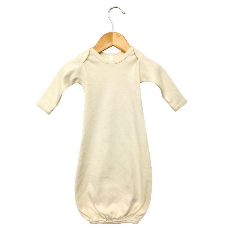 Long sleeved layette gown with lap shoulder, and cover-stitched elastic bottom. Super soft 100% cotton 7.2 ounce interlock ensures highest quality for a great value! Interlock knit is the most stable fabric for screen-printing , embroidery and other appliqu50089s. Complies with CPSIA.