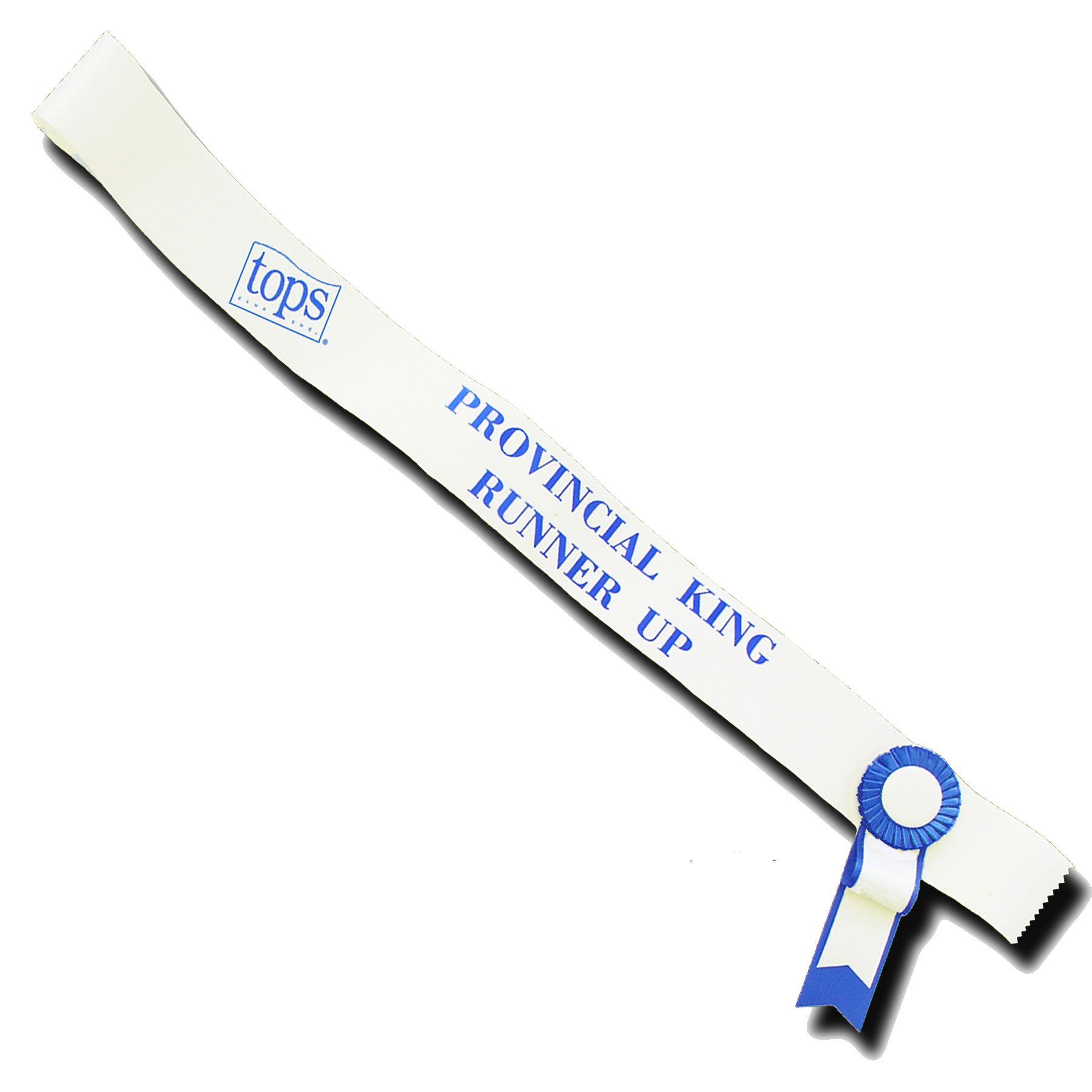 Foil Stamped Sash with rosette accent. Many ribbon and foil colors to choose from. Sashes are designed for limited use (1 or 2 wears). Sashes should not be laundered or dry cleaned. Only 72" size is designed to wrap around contestant. 3" W x 72" L