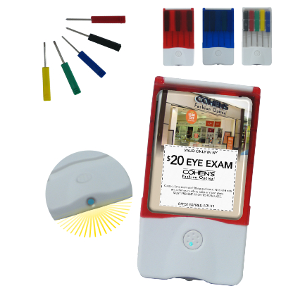 Union Printed, Mini Screwdriver Set with White LED Light, Includes: 2 Mini Phillips-heads & 3 Mini Flat-heads screwdrivers. Press button power for light, flip-open cover to expose tools. This is a gift that will be useful for years to come. Full Color Process Epoxy Dome Label Print Included - NO MINIMUM - Decorated in our Union Shop - Union Bug Available at No Charge!