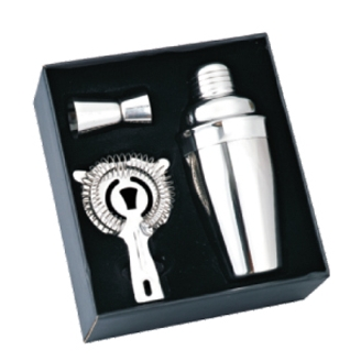 3 Piece Set, Bar Set, Dual Jigger, Strainer, 18 Oz. Shaker, 3 Piece Cocktail Shaker, Cap, Stainless Steel, Metal, Drink Mixer, Barware, Box
