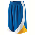 100% Polyester MVPdri, contrast color curve insert on the left leg, 2" wide covered elastic waistband with inside drawcord, 9" inseam, and triple-needle hemmed bottom