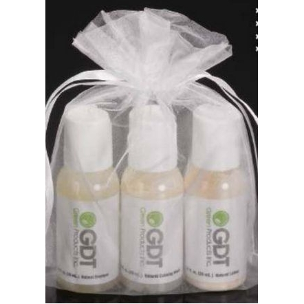 Natural Gift Set. Organza bag (silver or white), 1 Oz. Natural Shampoo, 1 Oz. Natural Calming Wash, 1 Oz. Natural Lotion. Natural shampoo and lotion are unscented. Natural calming wash scent is Lavender Watermelon. Perfume and dye free. Complies with CPSIA, FDA.