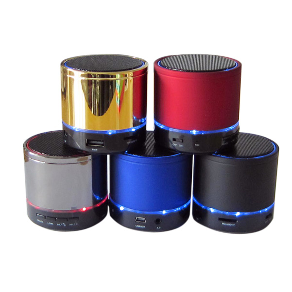 Bluetooth speaker with fashionable aluminum case design. Supports hands-free function for calls. Supports TF card and line in play music with built in Li-Ion battery. Compatible with all bluetooth devices. 2.36" W x 1.96" H