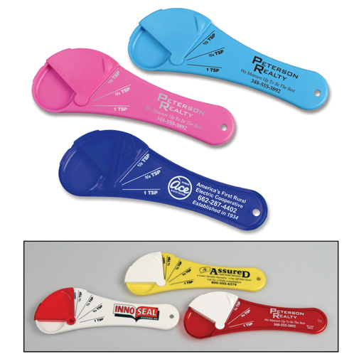 The perfect kitchen tool that will be kept and used often. Top adjusts easily with your thumb to measure 1/4 to 1 teaspoon in 4 measurements. Top also removes for easy cleaning. Complies with FDA. 5 3/4" W x 5/16" D x 2" H