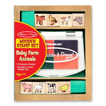 Eight detailed baby farm animal stamps and a 4-color ink pad help kids create countless animal scenes, all conveniently contained in a colorful wooden box. It's a tremendous value that children will use over and over again! Washable, non-toxic kid friendly ink. Recommended for ages 4 years and up. Package dimensions are 5''x6''x2''.