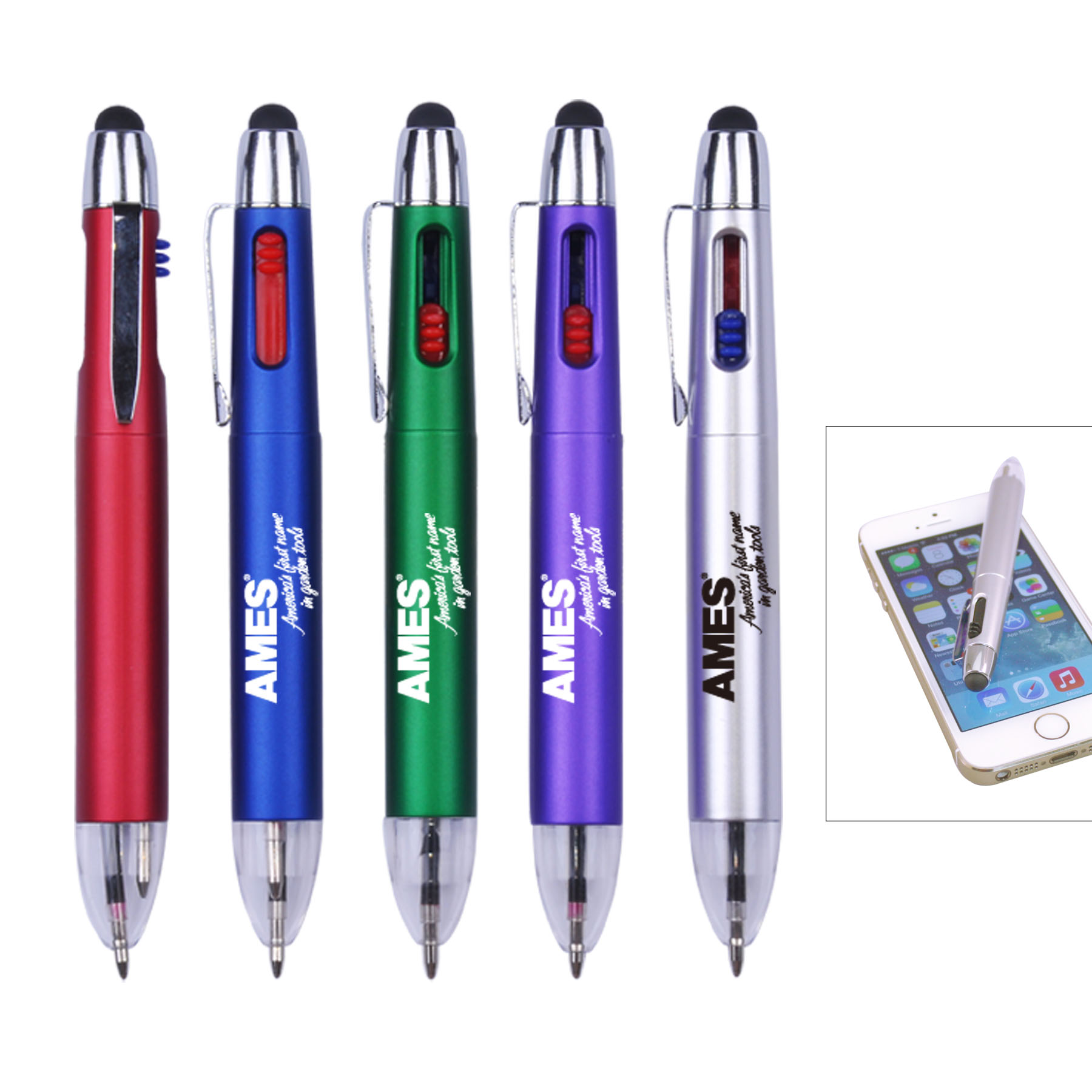 Digital full color process method 49832CBlack and red ballpoint stylus pen. Take notes on paper or your handheld device with this pen/stylus combo. With the built-in clip, clients can carry this plastic retractable pen in an organizer pocket, chest pocket, briefcase or purse.Made in CN. Full color pricing is subject to artwork verification. 4 5/8" L