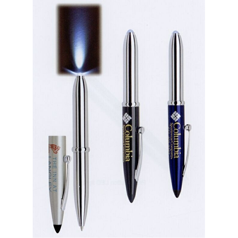 Cap-off, LED light pen, PDA stylus tip on the cap, metal construction. This stylus tip does not compatible with touch screens.